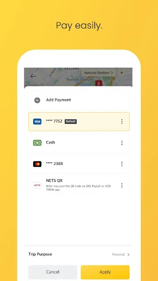 더 이상 현금 걱정은 하지 마세요. 신용카드 또는 체크카드 정보를 추가하여 앱 내에서 이동 서비스나 음식 비용을 결제할 수 있습니다. 개인정보는 암호화와 연중무휴 사기 감지 기능으로 거래가 안전하게 보호됩니다.