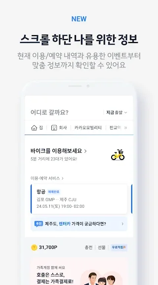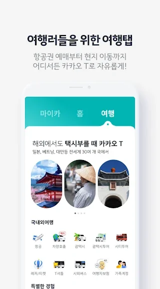• 여행 탭: 장거리 이동에 필요한 서비스