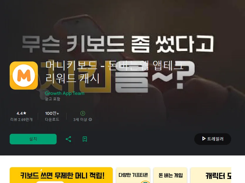 1) 머니키보드 - 돈버는앱 앱테크 리워드 캐시 어플 소개