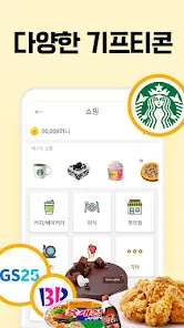 스타벅스, bhc, gs25, cu 등 커피, 치킨, 편의점 브랜드 다수 입점한 앱테크・돈버는앱!