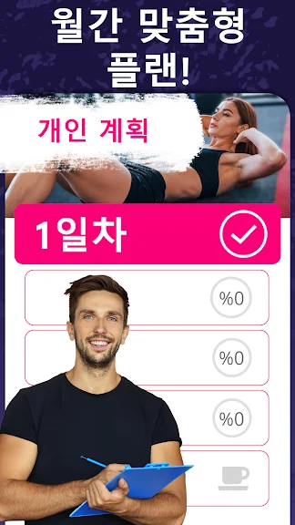 규칙적인 운동으로 주요 근육을 단련해 멋진 몸매를 만들어보세요. 헬스장 또는 값비싼 피트니스 트레이너가 필요 없습니다. 집에서 하는 간단한 운동으로 체중을 감량하세요!