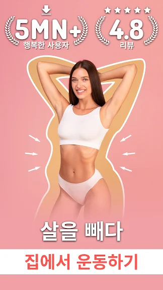 아래는 집에서 살빼기 앱 - 여성 피트니스 운동 어플에 대한 스크린샷 정보입니다.