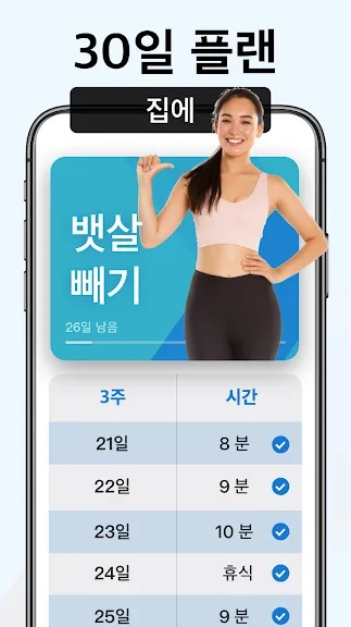 2) 30일만에 뱃살 빼기 - 홈트레이닝, 평평한 배 만들기 어플 스크린샷