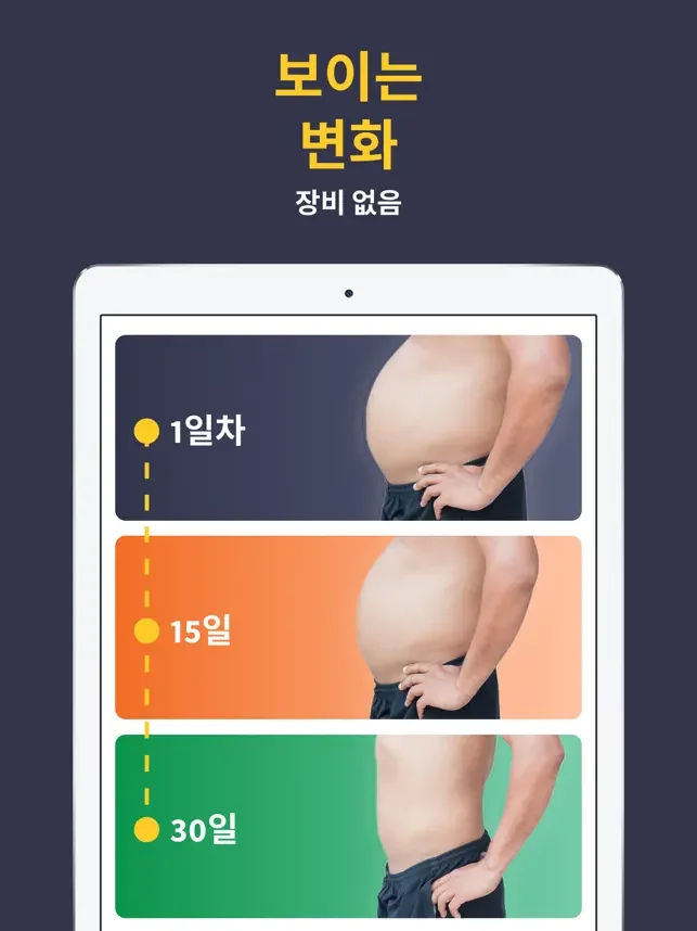 5. 남성을 위한 트레이닝: 저희 앱은 여성뿐만 아니라 남성을 위한 효과적인 운동도 제공합니다. 30일 만에 남성들도 몸의 큰 변화를 느낄 수 있습니다.