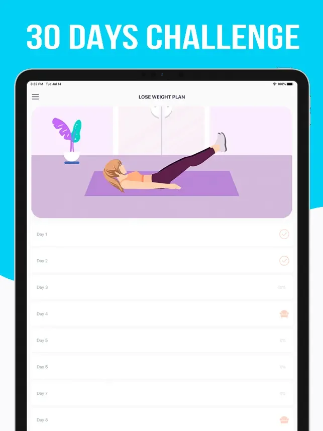 우리의 애플 리케이션은 당신이 신속하고 안전하게 체중 감량을 위해 특별히 설계되었습니다. 가정이나 어느 곳에서나 하루에 몇 분 정도 운동을하십시오! 추가 장비가 필요하지 않습니다. 몇 주만에 위장을 얻을 수 있습니다!