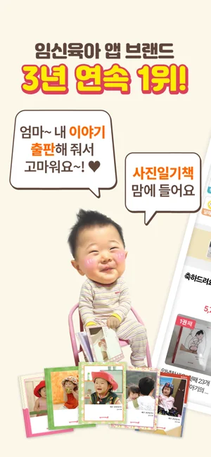 무료 출판뿐만 아니라, 임신부터 육아까지 필요한 모든 기능이 제공됩니다.