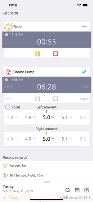 -스톱워치(타이머) : 모유수유, 유축, 수면시간은 스톱워치로 간편하게 기록할 수 있습니다.