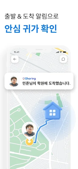 (집, 학교, 학원)에 잘 도착했는지 궁굼해 하거나 걱정할 필요가 없습니다.