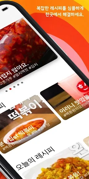 아래는 백쌤의 요리비책 레시피 어플에 대한 스크린샷 정보입니다.