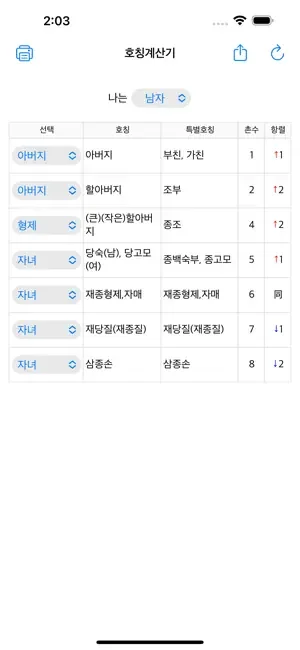 2) 아이폰 호칭 계산기 (촌수 계산기) 어플 스크린샷