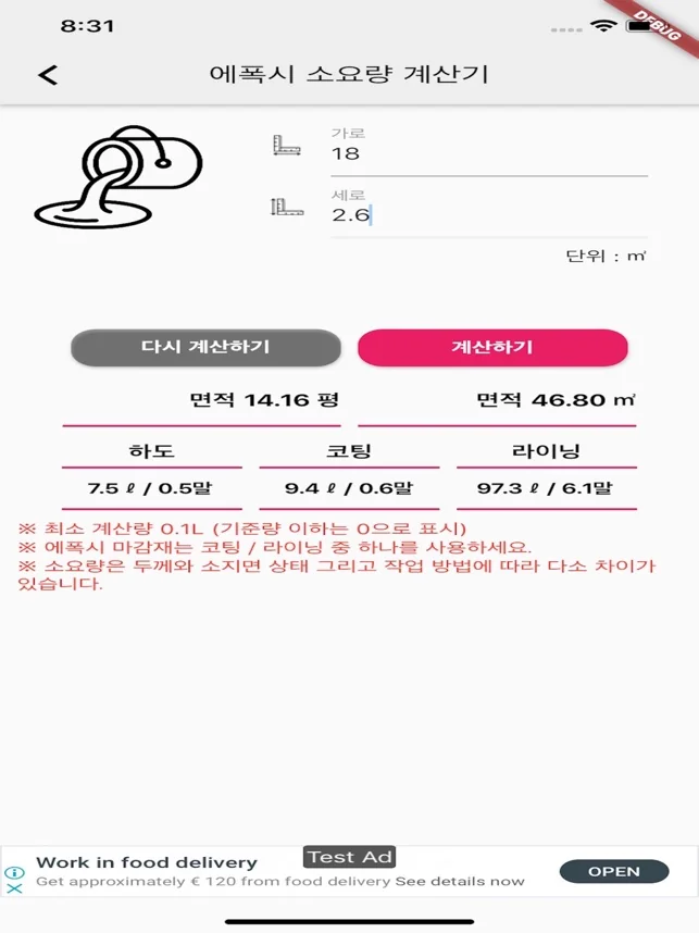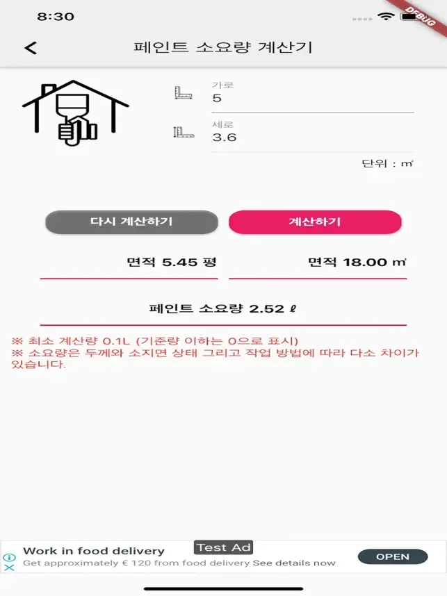 아래는 아이폰 페인트 계산기 어플 스크린샷 정보입니다. 페인트 계산기 어플 스크린샷 정보를 확인하고 싶으신분은 아래를 참고하시기 바랍니다.