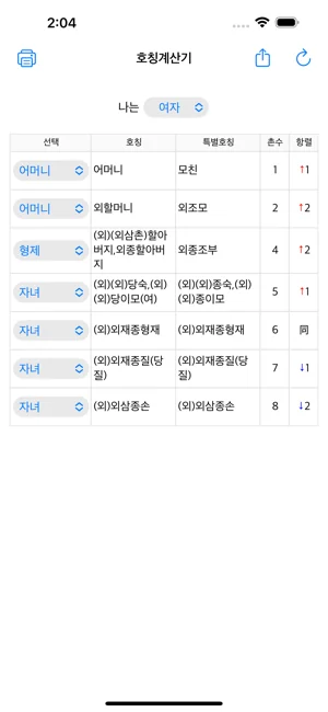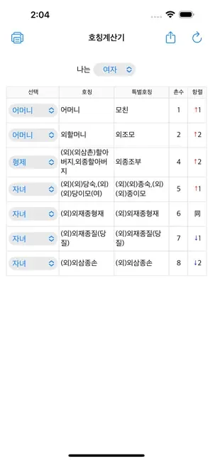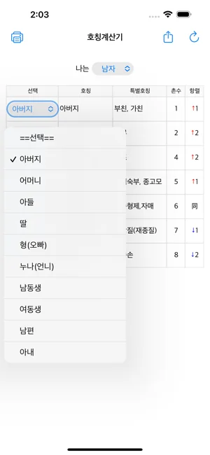 2) 아이폰 호칭 계산기 (촌수 계산기) 어플 스크린샷