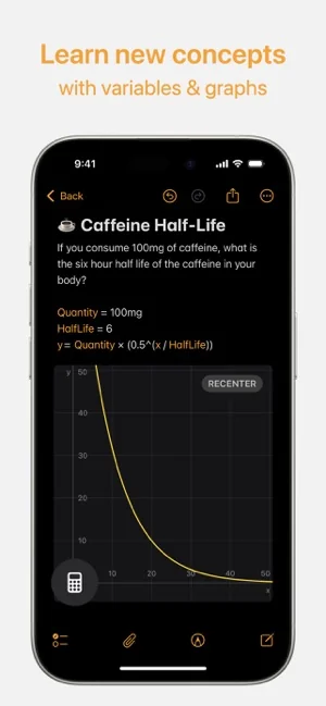 기본 및 공학용 계산기를 사용하여 손쉽게 수식을 입력할 수 있습니다. 수학 메모 계산기를 통해 표현식을 풀고, 변수를 생성하고 사용하며, 방정식을 그래프로 표현하는 작업이 직접 쓰거나 입력하는 작업만큼 간단해집니다.