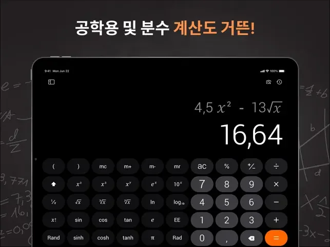• 공학용 계산기: 삼각 함수, 로그 함수, 지수 함수 등 복잡한 계산도 문제없이 처리합니다.