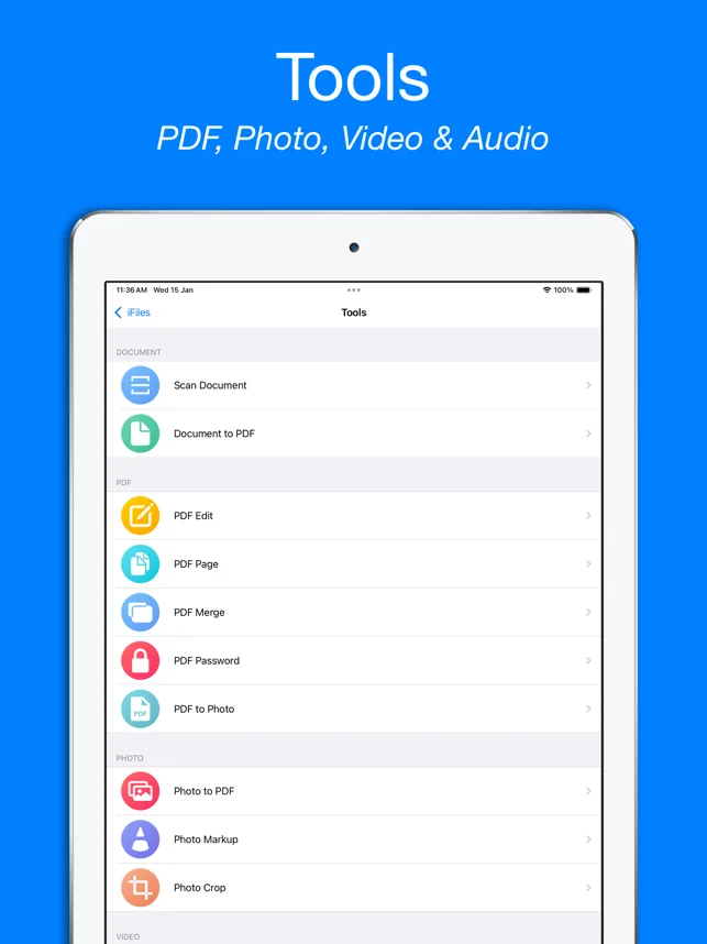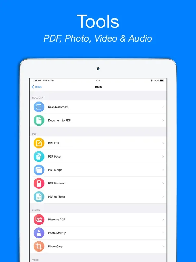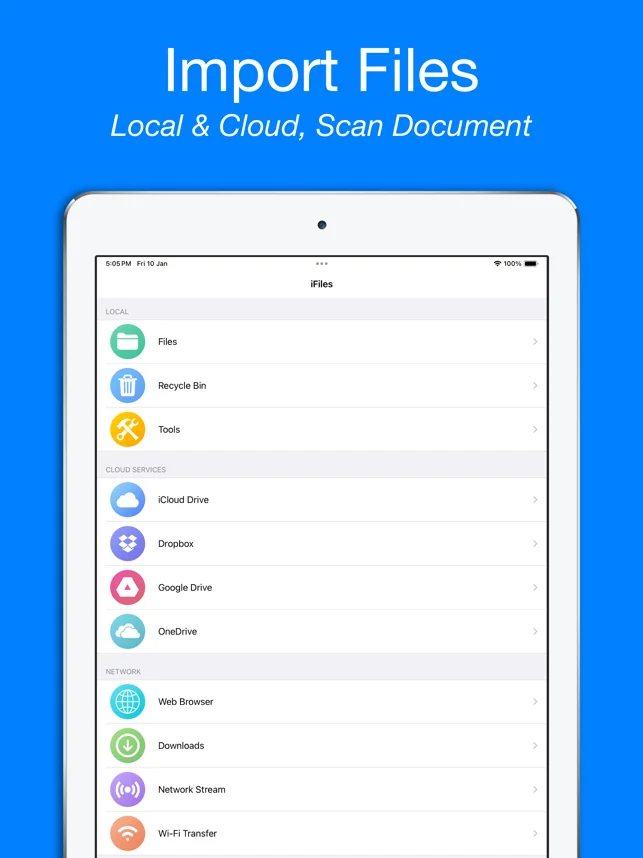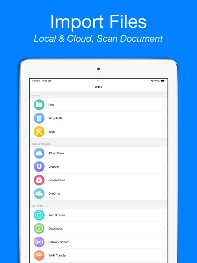 iFiles는 뮤직 플레이어, 비디오 플레이어, 사진 뷰어, 문서 스캐너, PDF 리더, PUB 리더, 문서 뷰어 및 Zip 및 RAR 추출기를 지원하는 클라우드 파일 매니저 및 리더입니다.