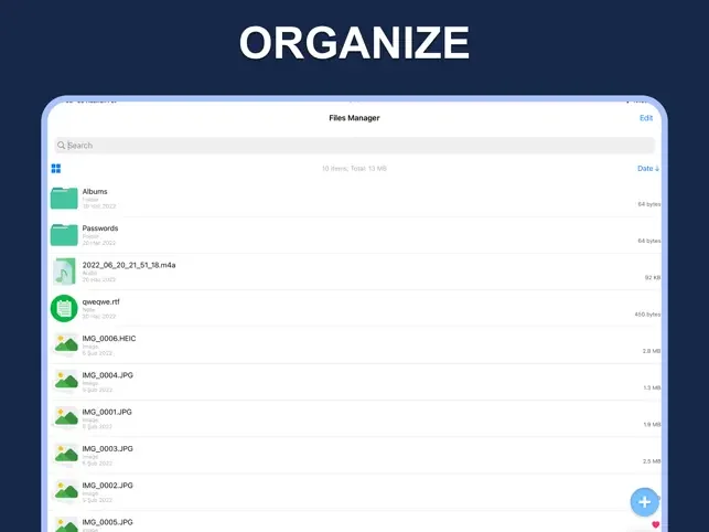File Manager is the ultimate app to organize and view all your files on your iPhone or iPad. It is like the Windows Explorer on your PC or the Finder on your Mac. Always have your important files with you.