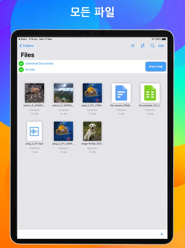모든 파일을위한 중앙 허브. iPad 및 iPhone에서 원하는 거의 모든 것을 읽고, 듣고,보고, 주석을 달 수 있습니다. 파일, 문서, 책, 모든 콘텐츠는 iDocuments에서 집에 있습니다.