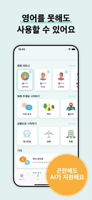 초보자도 영어 회화 실력을 향상시킬 수 있도록 지원합니다.