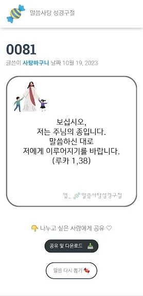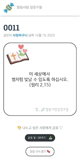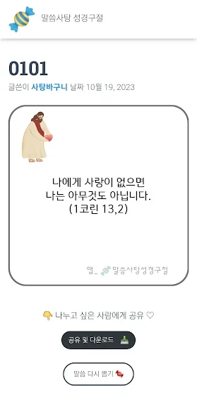 아래는 말씀사탕 성경구절 어플에 대한 스크린샷 정보입니다.