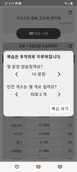 아래는 성경 암송 - 개역한글판 어플에 대한 스크린샷 정보입니다.