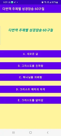 아래는 다번역주제별성경암송60구절 어플에 대한 스크린샷 정보입니다.