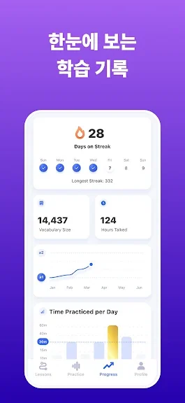 • 진도를 추적하세요. 매일 연습하는 습관을 들이면 재미난 보상과 업적을 획득하여 어학 학습 목표를 향해 나아갈 수 있답니다!