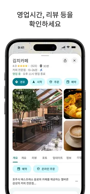 • 식당 예약, 메뉴 확인 및 주문을 지도 앱에서 곧바로 실행할 수 있습니다.
