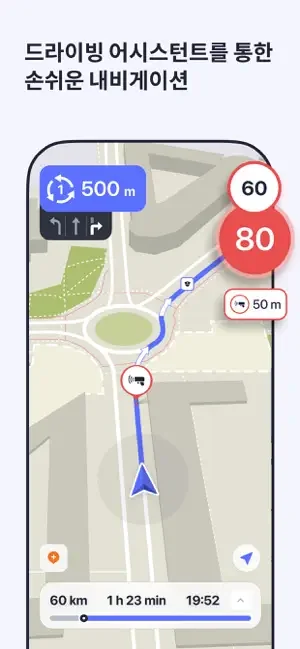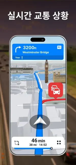 • 교통상황, 사고, 도로 폐쇄 등의 실시간 정보에 기반한 자동 경로 변경으로 시간을 절약하세요.