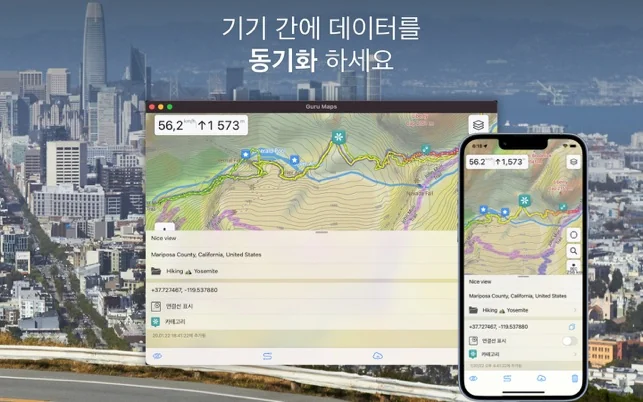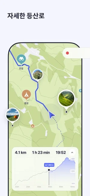 관심 지점(POI), 하이킹 코스, 다른 지도에 없는 장소들을 안내합니다.