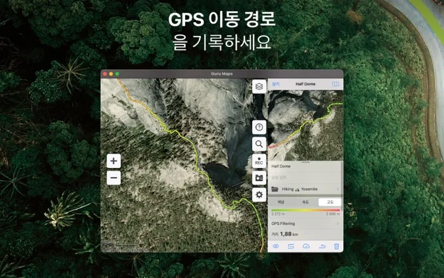 Guru Maps에서 GPS 트랙 분석 탐험! 고도/속도/경사 그래프, 더 부드러운 트랙을 위한 GPS 필터링. 야외 모험을 기록하고 분석하고 공유하세요.