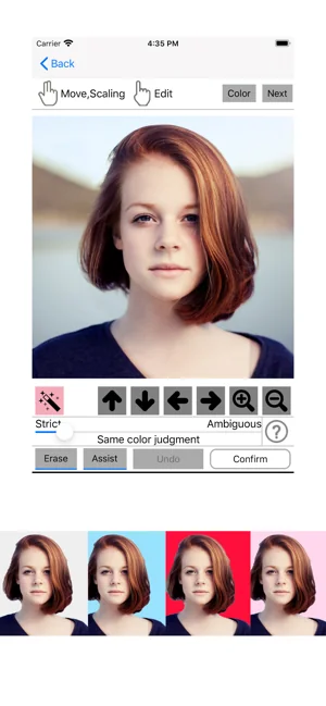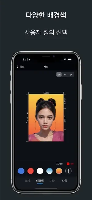 앱에서 제공하는 배경색 외에도 배경색을 사용자 지정할 수 있습니다. 얼굴의 비율과 위치를 자유롭게 설정할 수 있습니다.