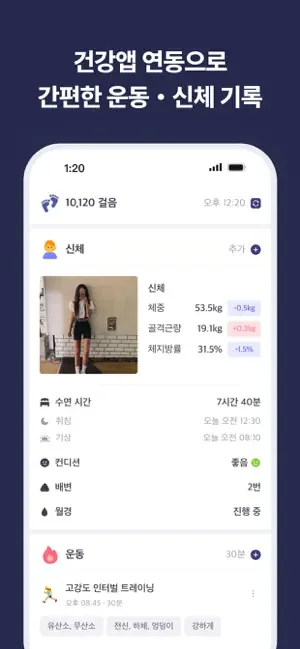 이 앱은 내 건강 데이터를 분석해서, 영양제 추천부터 식단 조절까지 세심하게 안내해줘요. 하루 동안 먹은 음식과 운동 기록도 자동으로 정리해주니, 일상 속에서 자연스럽게 건강 관리를 할 수 있어 좋아요.
