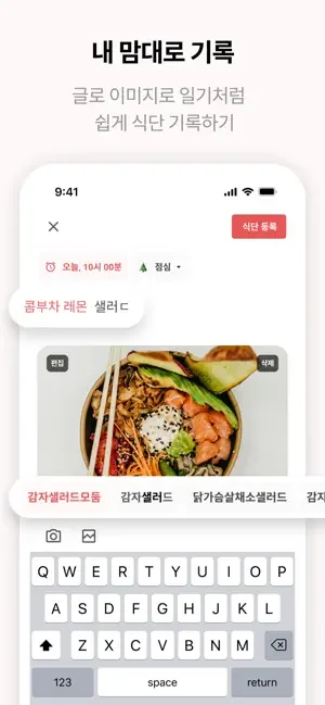 이 앱은 단순히 식단을 기록하는 것 이상으로, 내가 어떤 생각을 하는지부터 살펴보고, 건강한 습관을 자연스럽게 만들어가게 해줍니다. 하루하루 기록하면서 나도 모르게 조금씩 목표에 다가가는 경험을 할 수 있어요.